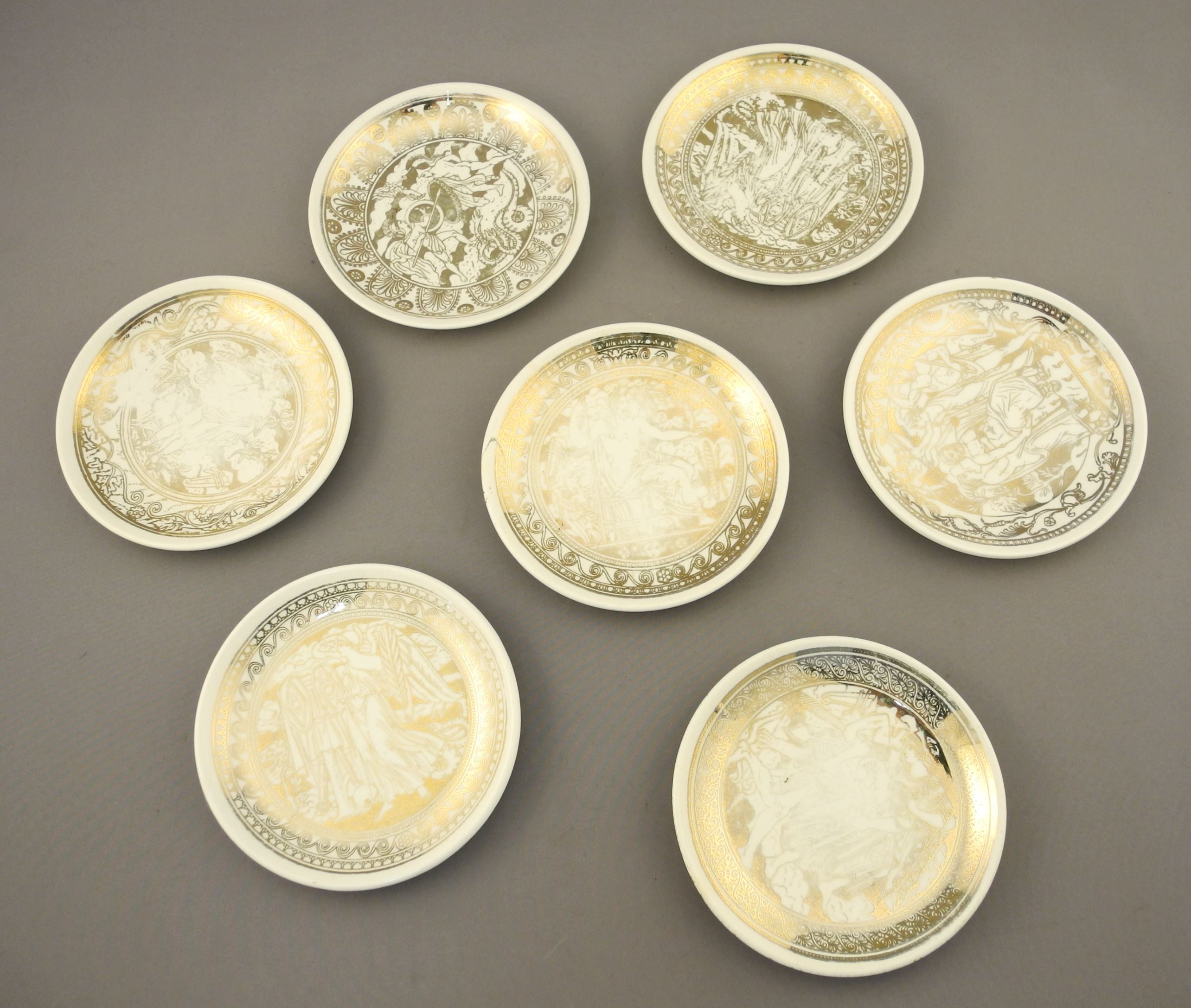 LOT 262 7 Fornasetti Milano Mitologia Dishes 4 1/16" Diameter (as found). Estimate: $50 - $60 Sold For: $25 Auction Date: Tuesday, February 06 2024 at 4:00 PM