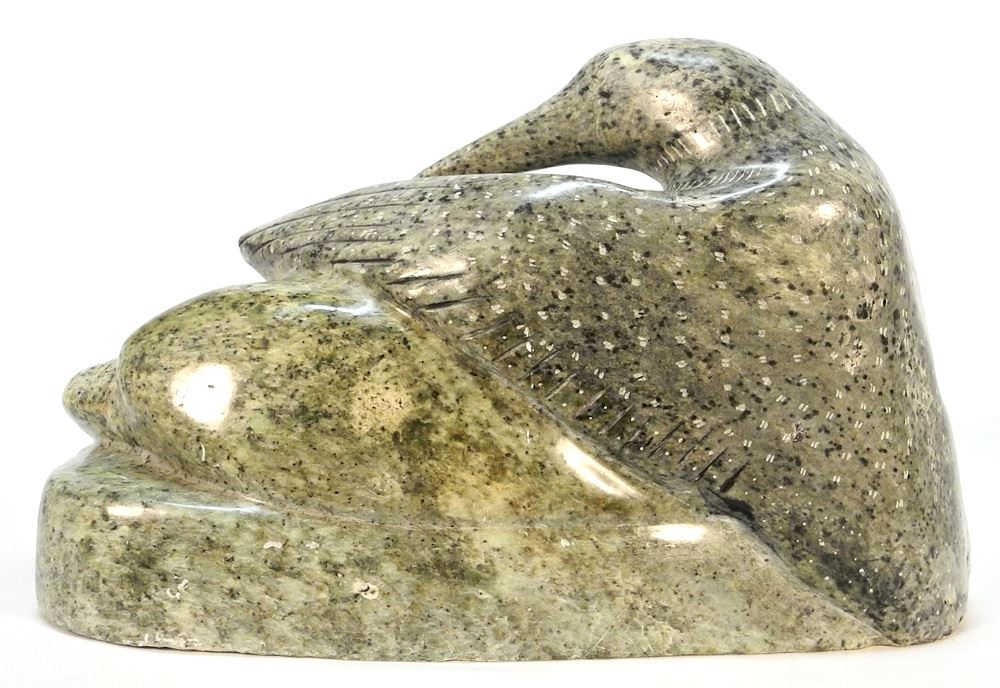 Marble Sculpture, 9 x 15 1/2 x 5", "Bird Nesting with Lion".