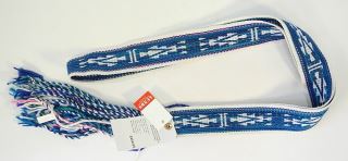 LOT 237 Zuni Cotton Sash signed with Label Loren Quam, 96"L, "Spring is Here". Estimate: $50 - $100 Sold For: $30 Auction Date: Tuesday, February 06 2024 at 4:00 PM