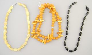 Collection of 6 Amber / Jade / Hardstone + Other Necklaces, 15-30"L
