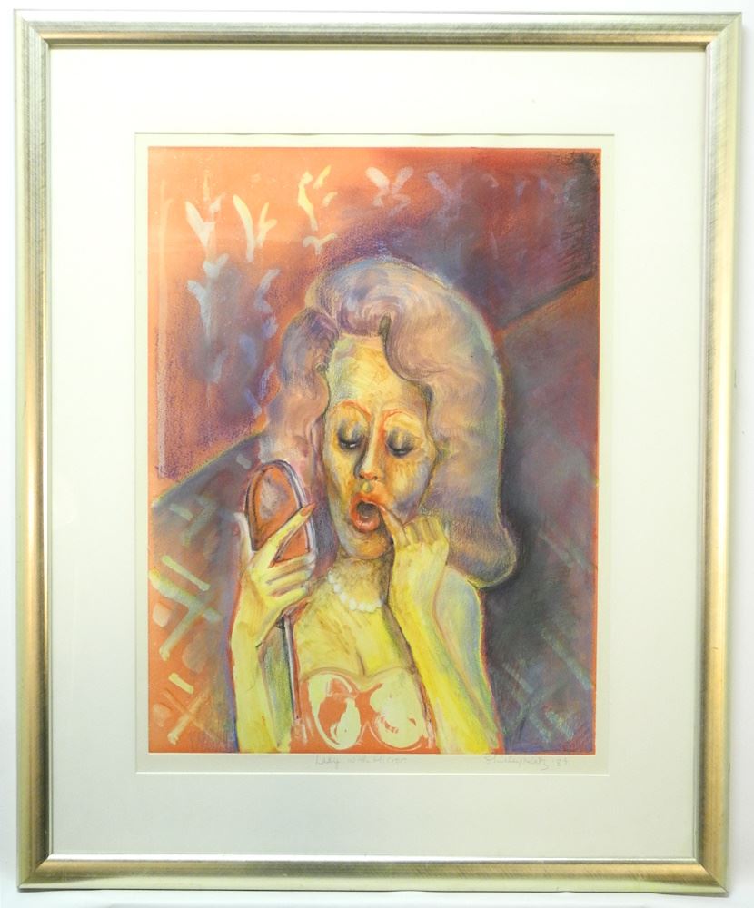 LOT 64 Mixed Media on Paper signed Shirley Kate '87, 23 3/4" x 17 5/8", "Lady with Mirror". Estimate: $100 - $150 Auction Date: Tuesday, February 06 2024 at 4:00 PM