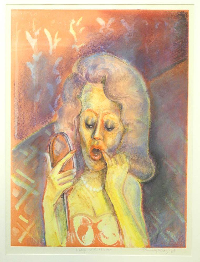 Mixed Media on Paper signed Shirley Kate '87, 23 3/4" x 17 5/8", "Lady with Mirror".