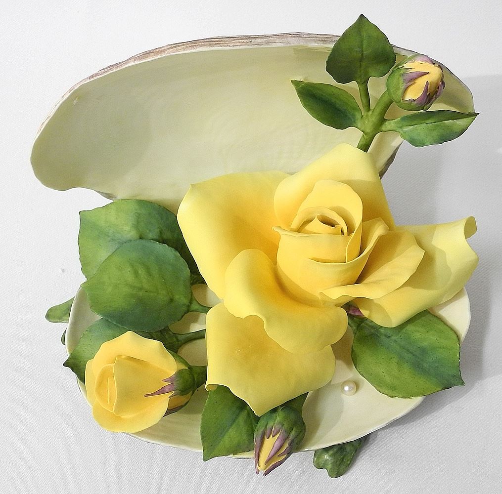 Boehm Bone Porcelain Collection, "Yellow Rose in Oyster Shell", 7 1/2".