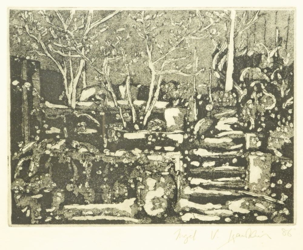 LOT 176 Lithograph signed Nigel V. K****lin 86', 8 7/8" x 11 1/2", "Untitled Garden Scene". Estimate: $50 - $60 Sold For: $20 Auction Date: Tuesday, February 06 2024 at 4:00 PM