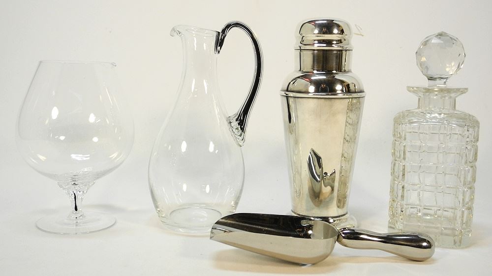 LOT 43 Sterling (marked) Mounted Revere Ice Bucket Designed by Richard Hudson, with cocktailwares Estimate: $100 - $150 Sold For: $90 Auction Date: Tuesday, February 06 2024 at 4:00 PM