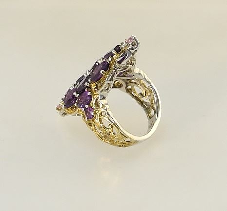Gilt Silver (marked 925) Amethyst & Pink Stone Ring, Size 7, 7.75 Grams.