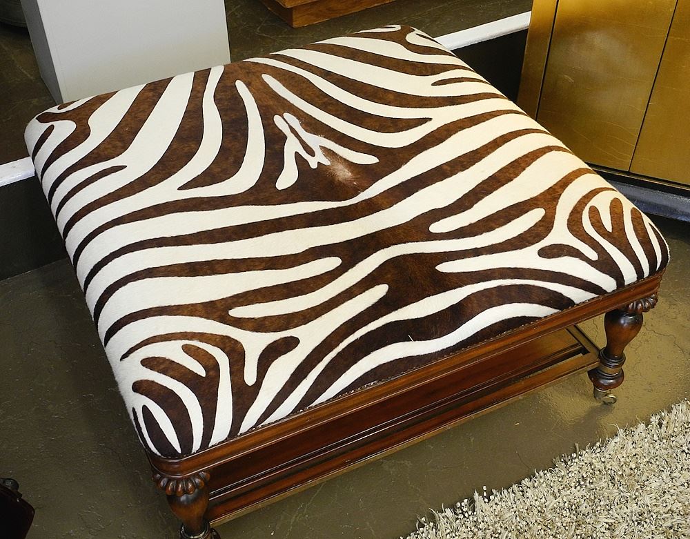 LOT 313 Thomasville Hemingway Collection Ottoman with Zebra Hide, 20 1/2" x 40" x 40". Estimate: $250 - $400 Auction Date: Tuesday, April 23 2024 at 4:00 PM