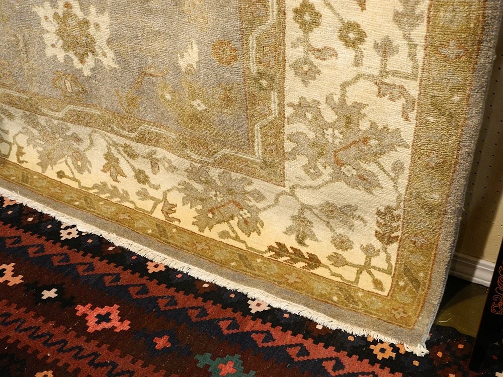 Hand Knotted Wool Carpet, Pale Blue & Ochre Approximately 9'9" x 8'1".