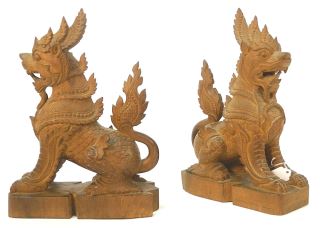 LOT 140 Pair of Indonesian Carved Wooden Lion Dogs, 13". Estimate: $60 - $80 Sold For: $70 Auction Date: Tuesday, June 04 2024 at 4:00 PM