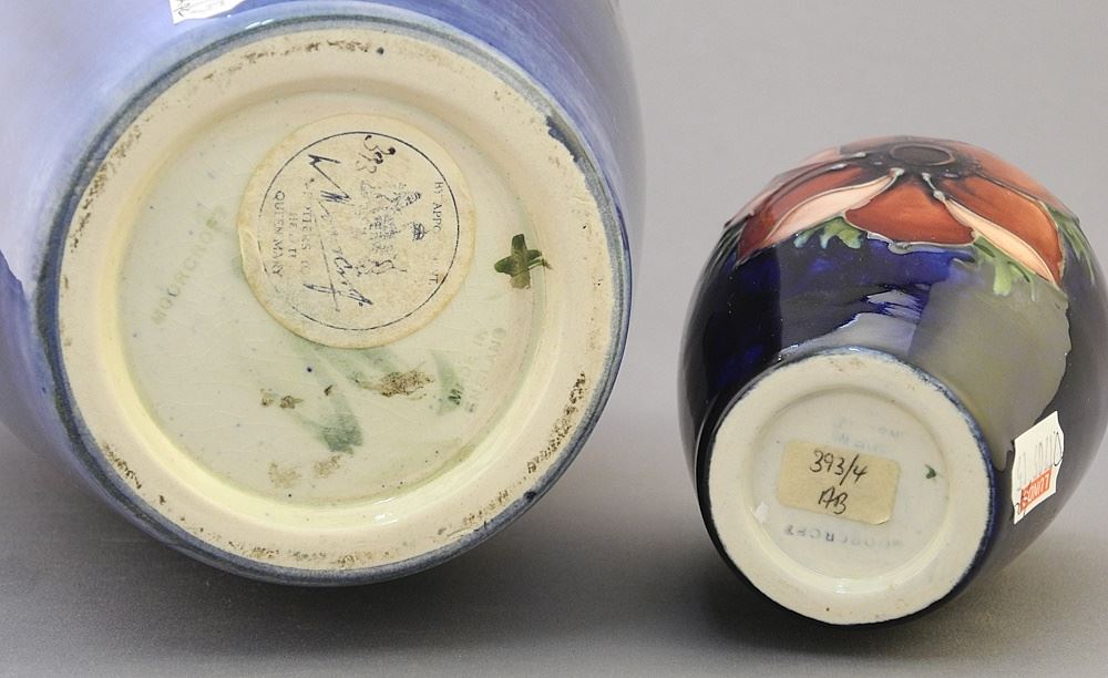 2 Moorcroft Anemone Vases: 10" & 4 1/8"h.