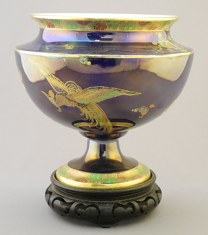 Carlton Ware Blue Lustre Bowl, 7" Diameter on Stand.