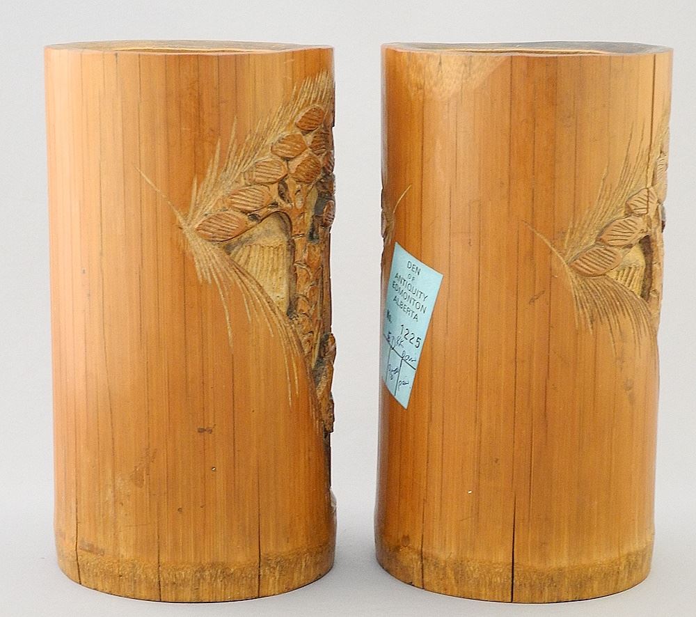 Pair of Chinese Bamboo Brush Pots, 7 1/4"H.