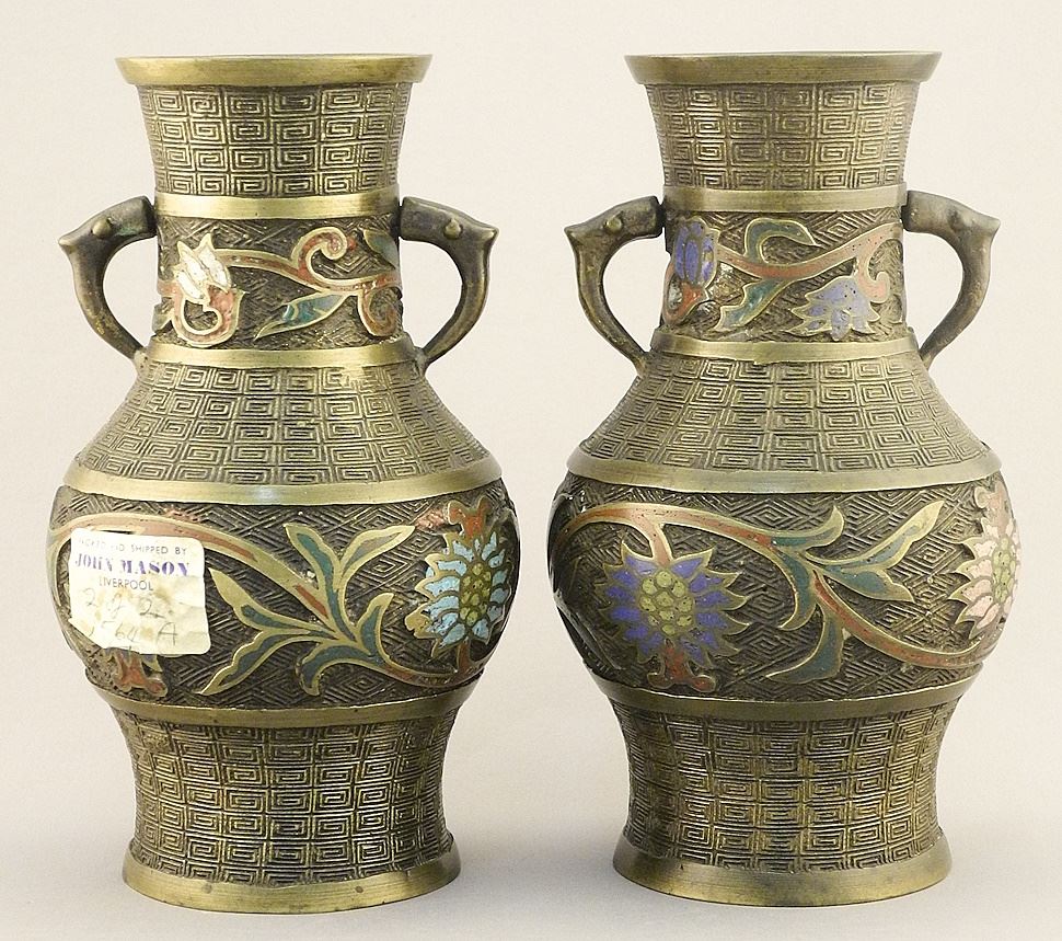 LOT 71 Pair of Chinese Bronze Champleve Vases, 7 1/4"H. Estimate: $100 - $150 Sold For: $70 Auction Date: Tuesday, June 04 2024 at 4:00 PM