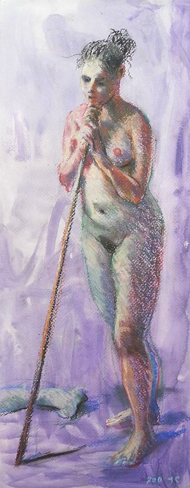 Pastel with Watercolour signed Rob (van der Schoor), 24" x 9 5/8", "Nude Study".