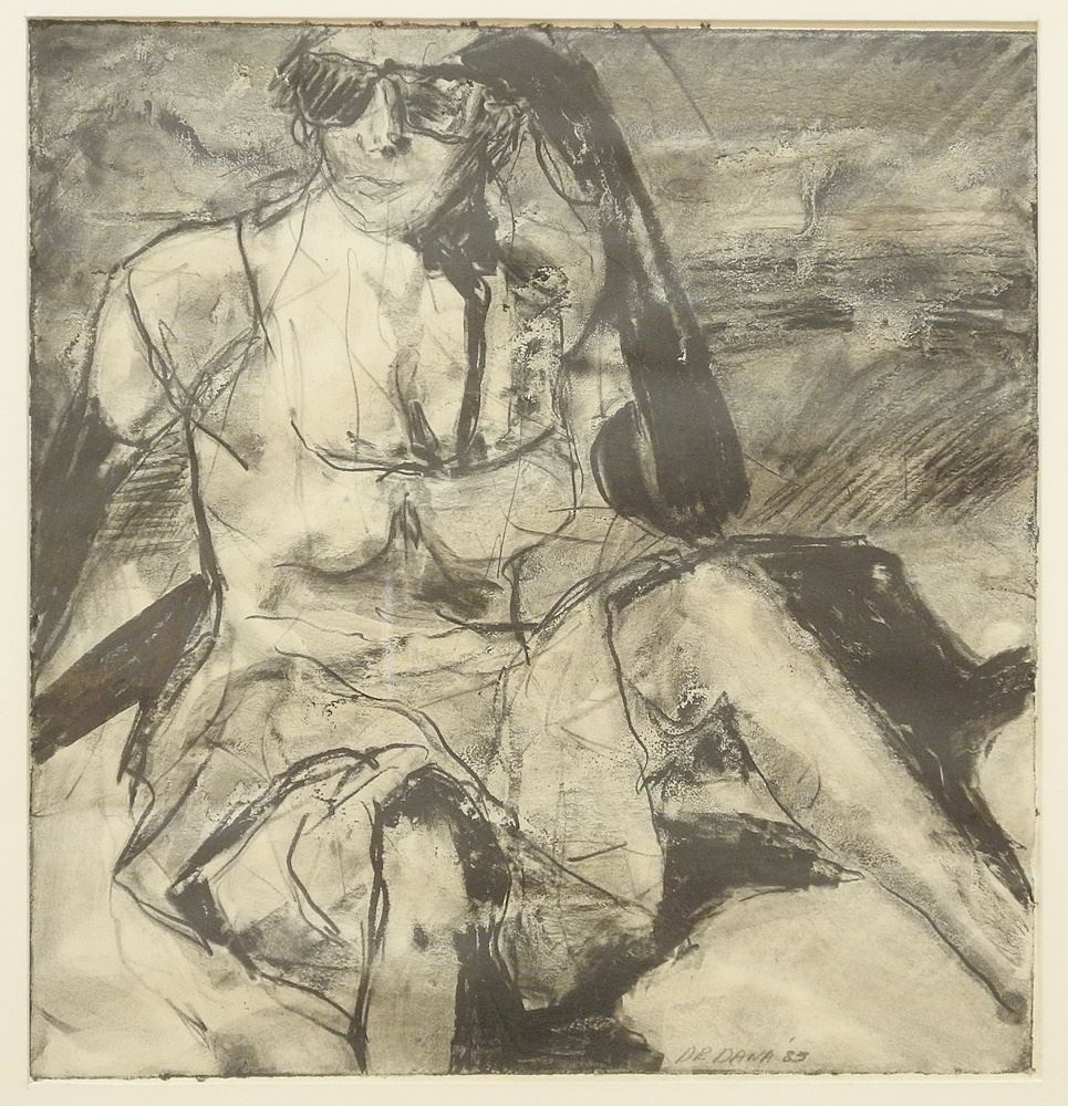 Mixed Media with Pencil signed DR DANA (Rae Dana Graves), 11" x 10 1/2 ", "Untitled Model with Gl