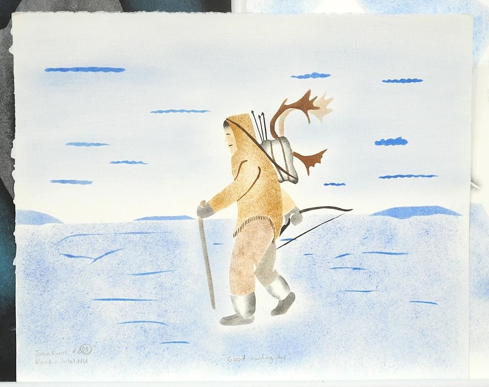 3 Inuit Stencils signed John Kurok 05', Approx. 14" x 11", "Rankin Inlet Scenes".
