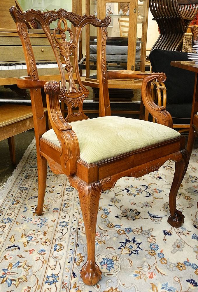 Banded Mahogany Double Pedestal Dining Table with 8 Chairs & 3 Leaves, 76 1/4" Closed.