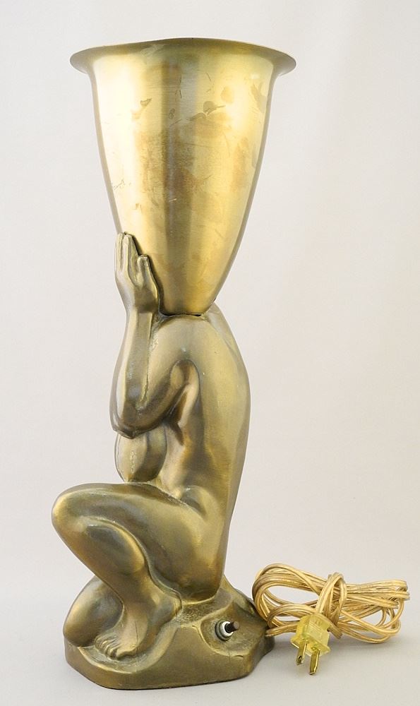 Bronze Finish Spelter Figural Uplighter Table Lamp, 15 3/4"h.