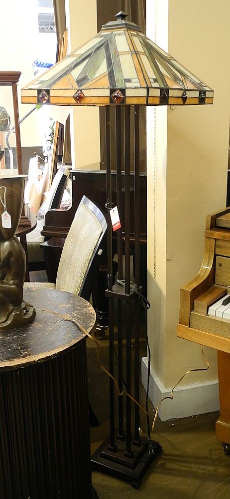 Prairie Style Leaded Glass Floor Lamp, 63"h.
