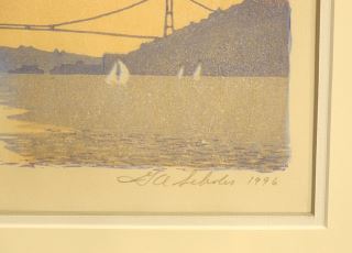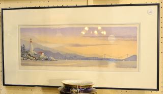 Colour Woodblock Print signed G. (Graham) A. Scholes, 9 1/4" x 23 3/4 , "Point Atkinson".