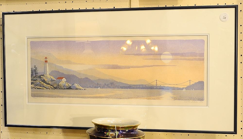 LOT 34 Colour Woodblock Print signed G. (Graham) A. Scholes, 9 1/4" x 23 3/4 , "Point Atkinson". Estimate: $250 - $350 Sold For: $375 Auction Date: Tuesday, June 04 2024 at 4:00 PM