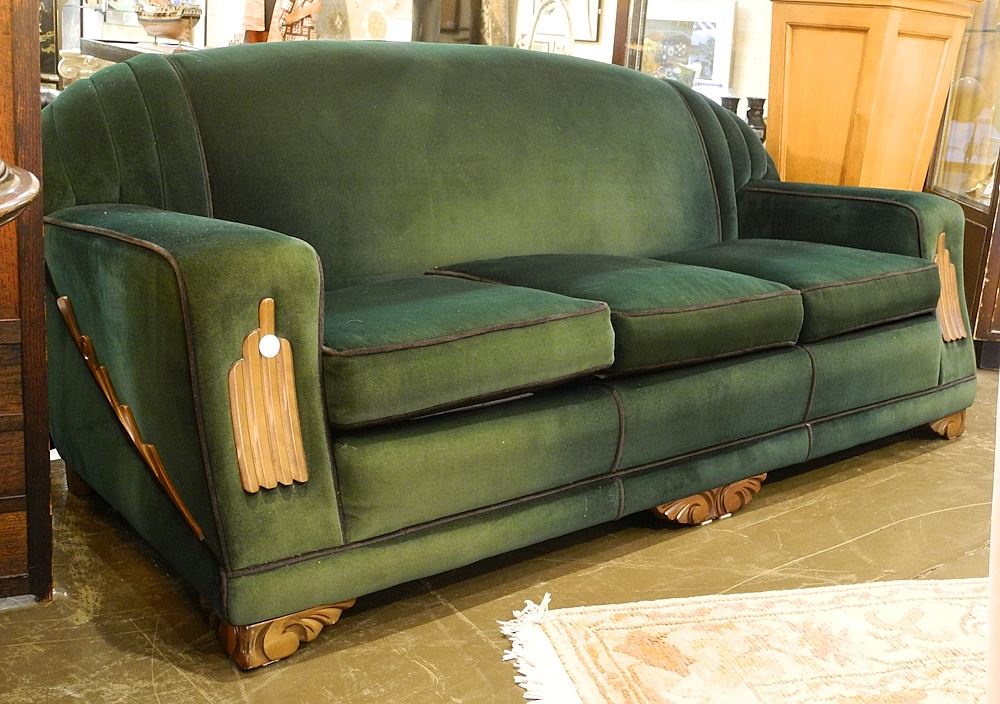 LOT 3 Vintage Art Deco Emerald Velvet Sofa Estimate: $150 - $300 Sold For: $350 Auction Date: Tuesday, June 04 2024 at 4:00 PM