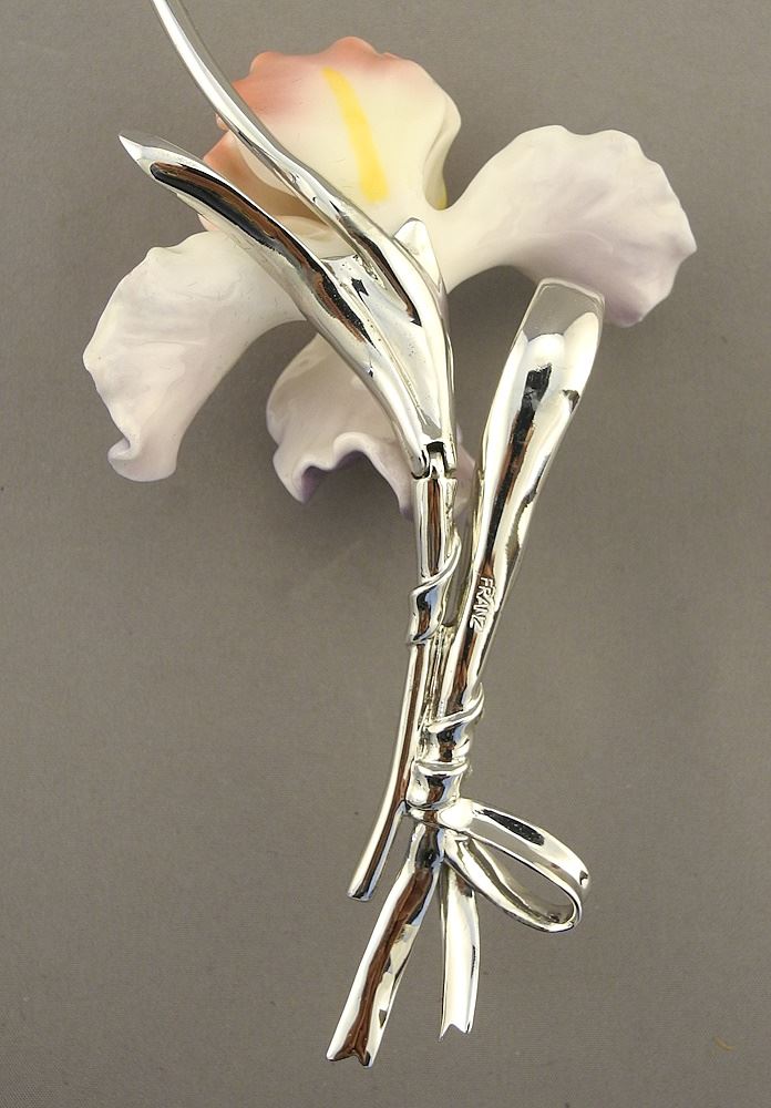 LOT 61 Franz Porcelain "Orchid" Necklace on Plated Neck Piece. Estimate: $80 - $100 Auction Date: Tuesday, June 04 2024 at 4:00 PM