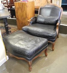 LOT 52 Black Leather Bergere Chair & Ottoman. Estimate: $100 - $200 Sold For: $450 Auction Date: Tuesday, September 24 2024 at 4:00 PM