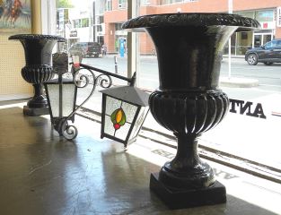 Pair of Cast Iron Garden Urns, 29 1/2"h.