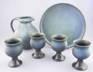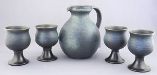 LOT 34 Jan Grove Pottery Pitcher Goblets & Tray Set, 10 1/4" - 4 1/8"h. Estimate: $150 - $300 Sold For: $200 Auction Date: Tuesday, September 24 2024 at 4:00 PM