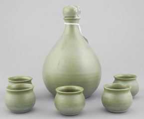 LOT 219 6 Piece Sake Set Monogrammed JG (Jan Grove), 7 1/2"h. Estimate: $100 - $200 Sold For: $90 Auction Date: Tuesday, September 24 2024 at 4:00 PM
