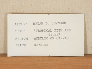 LOT 24 Acrylic on Canvas signed Brian D. Seymour'92, 12" x 16", "Tropical Fish & Tiles". Estimate: $80 - $120 Sold For: $50 Auction Date: Tuesday, September 24 2024 at 4:00 PM