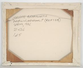 LOT 152 Acrylic on Canvas signed Jordan Broadworth, 21" x 26", "Peripheral Management (RDF16B), 1996" Estimate: $50 - $150 Sold For: $40 Auction Date: Tuesday, September 24 2024 at 4:00 PM