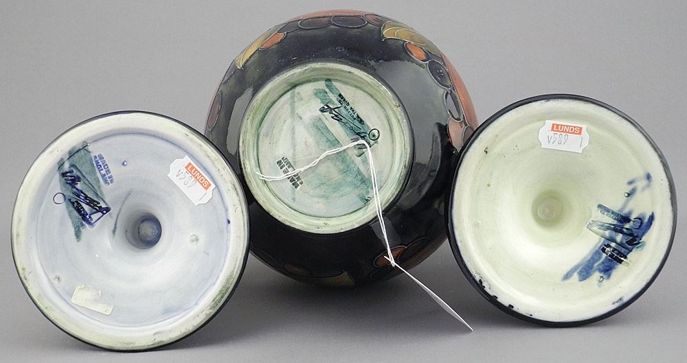 Moorcroft Pomegranate Vase (6 7/8") & Pair of Candlesticks.