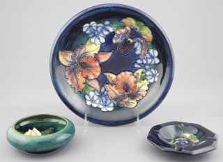 LOT 205 3 Piece Moorcroft Orchid: Dish (8 3/4" Diam) / Small Dish / Ashtray. Estimate: $100 - $200 Sold For: $100 Auction Date: Tuesday, September 24 2024 at 4:00 PM
