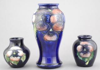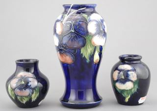 LOT 31 3 Piece Moorcroft Pansy Vases, 3 1/4" - 7 1/8". Estimate: $100 - $200 Sold For: $130 Auction Date: Tuesday, September 24 2024 at 4:00 PM