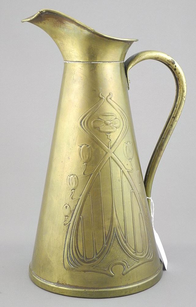 John Sankey & Sons Art Nouveau Brass Pitcher, 11 1/2"h.