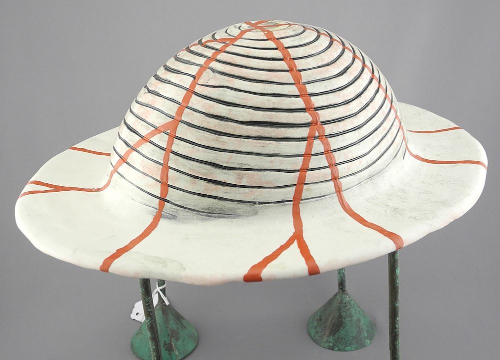 Attributed to Gary Murkel Ceramic Bowl (15"w) on Verdigris Metal Stand , 9 5/8"h.