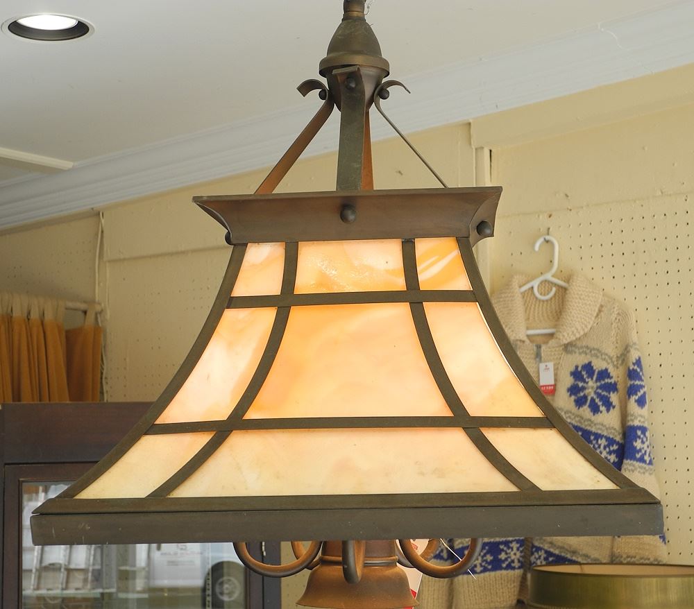 Contemporary Arts & Crafts Style Caramel Glass Light Fixture, 20 1/2" h.
