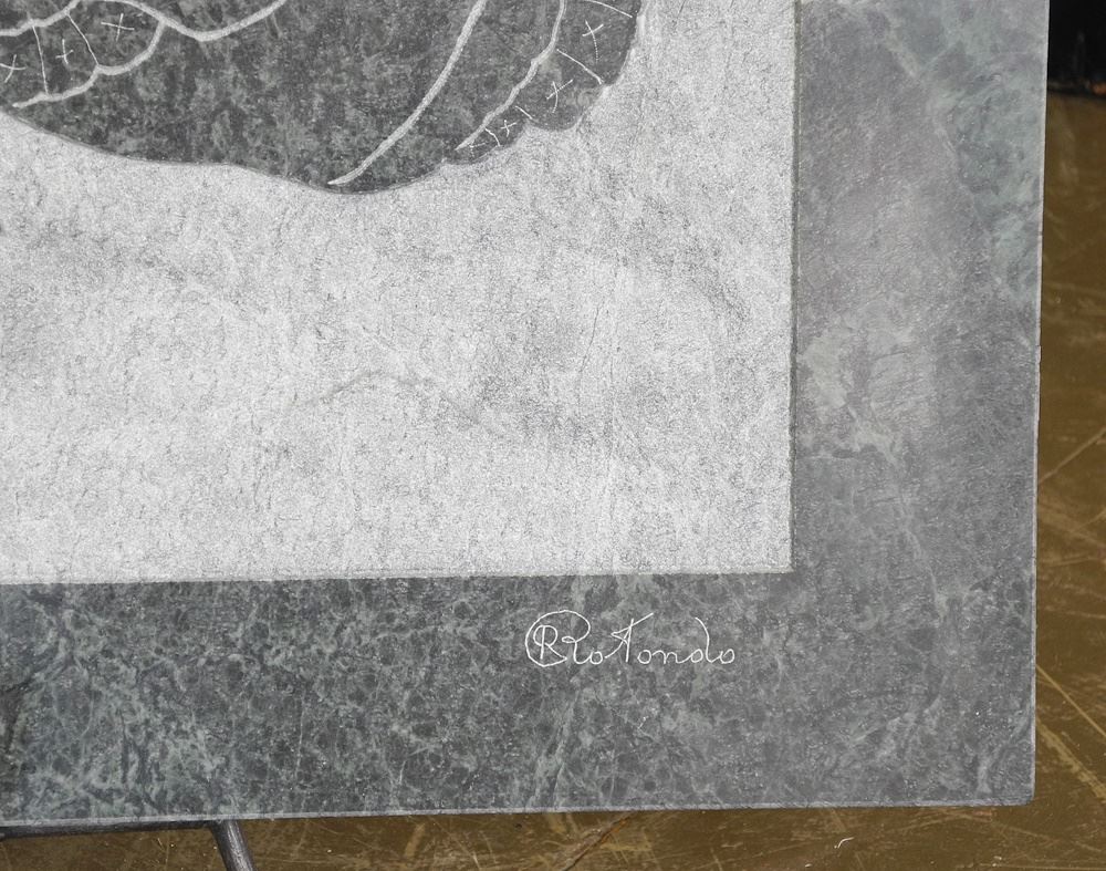 Vert Midas Marble Panel signed R (Raffaele) Rotondo, 24" x 30 3/4", "Chiot Taquin".