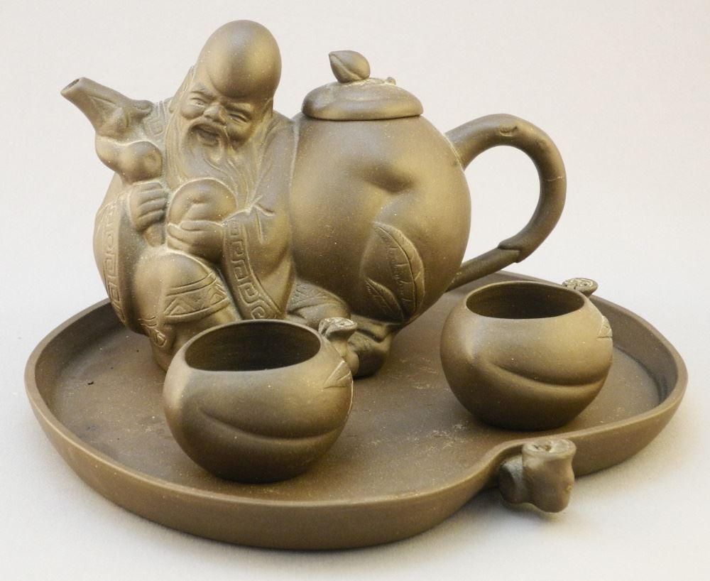 LOT 108 4 Piece Yixing Ware "Shou Lao" Tea Set, 7 5/8" w. Estimate: $80 - $120 Auction Date: Tuesday, September 24 2024 at 4:00 PM