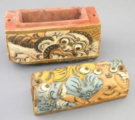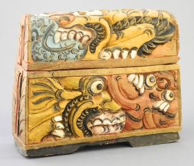 Vintage Indonesian Polychrome Wood Medicine Box.