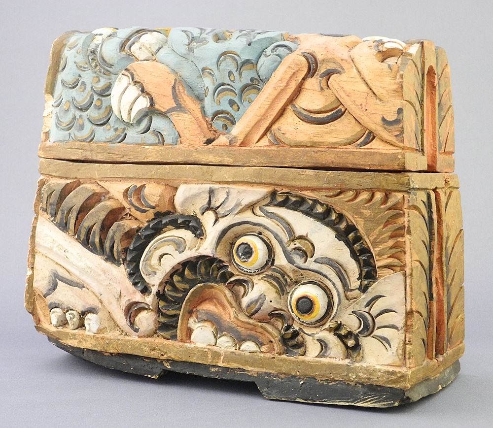 LOT 111 Vintage Indonesian Polychrome Wood Medicine Box. Estimate: $80 - $120 Sold For: $25 Auction Date: Tuesday, September 24 2024 at 4:00 PM