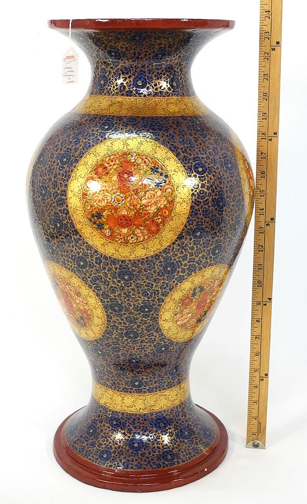 LOT 51 Mahdi & Sons Kashmir Papier Mache Baluster Vase, 24"h. Estimate: $100 - $150 Auction Date: Tuesday, September 24 2024 at 4:00 PM