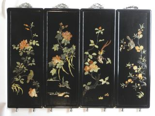 4 Chinese Black Lacquer & Coromondel Panels, Each 25" x 9".