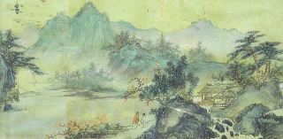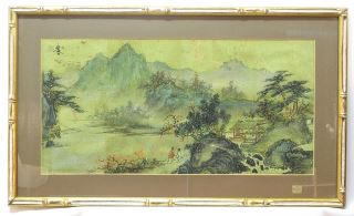 LOT 132 Chinese Ink & Colour Painting, 11 1/2" x 23 3/8", "Figures & Pavilion in Landscape". Estimate: $60 - $100 Auction Date: Tuesday, September 24 2024 at 4:00 PM