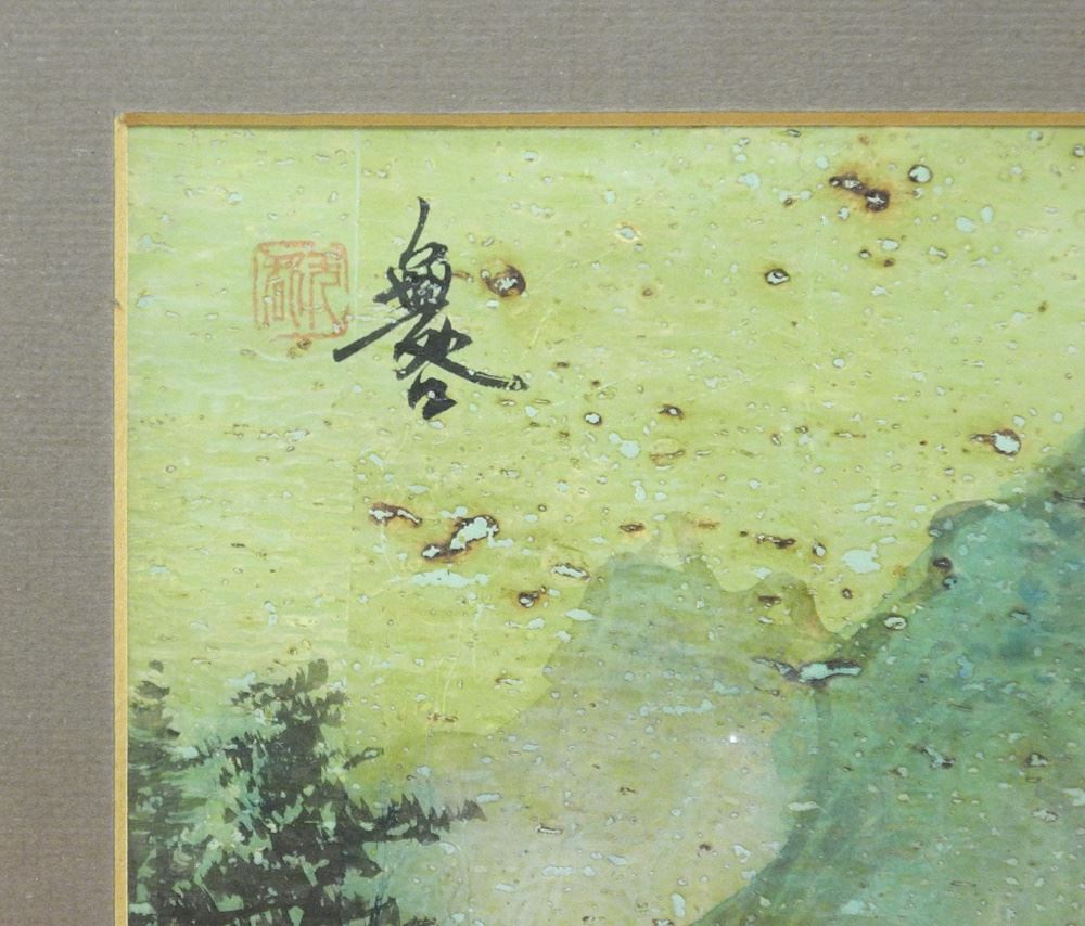 Chinese Ink & Colour Painting, 11 1/2" x 23 3/8", "Figures & Pavilion in Landscape".
