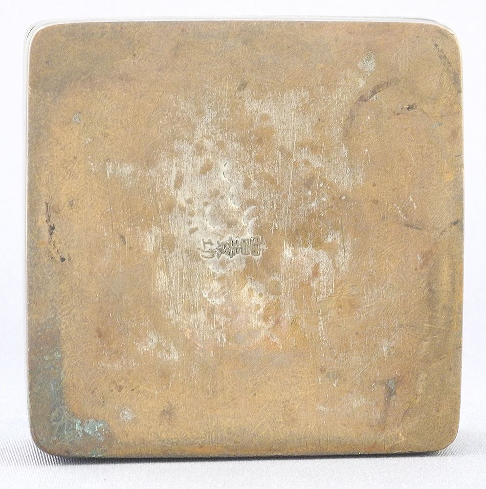 Chinese Bronze Ink Box with Inscribed Cover, 1" x 3" x 3".