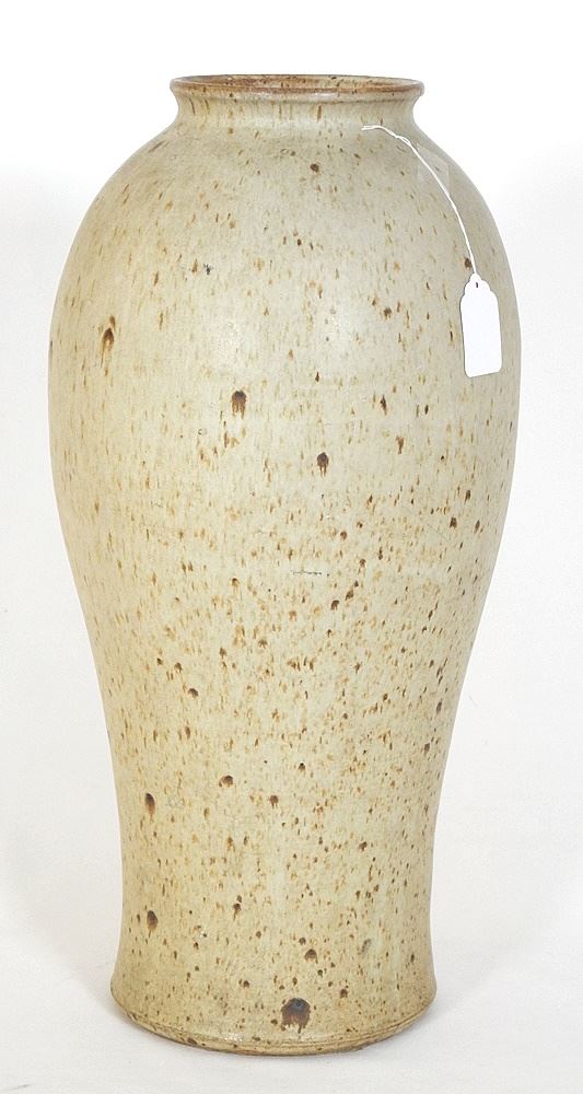LOT 9 Large Hand Thrown Stoneware Baluster Vase with Unidentified Impressed Mark, 19" High. Estimate: $60 - $100 Sold For: $50 Auction Date: Tuesday, September 24 2024 at 4:00 PM