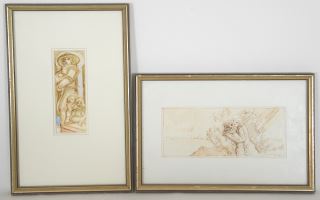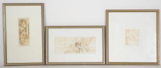 3 Sepia Ink Drawings signed Radisha (Nedeljkovich), Largest 3 3/8" x 8", "Figurative Subjects".